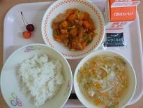 七夕汁には、オクラのお星さま、今日はなるとも星模様です☆彡デザートのゼリーにも黄色の星がのっていました