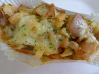 教室では、お皿に麺をのせる人、ソースをかける人とふたりで盛り付けました