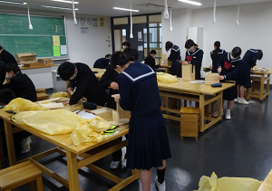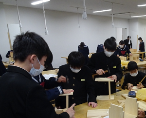 1年生が木工に挑戦 投稿日時 : 2021/12/21 wajimj 1年生は技術科で木工をしています。この日の作業工程は接合でした。それぞれ、キリや金槌を使ってまっすぐに釘を打ち込む作業に苦戦している様子でした。それでも、周囲の友達と協力しながら着実に組み立てを進めていました。完成が楽しみです。 Tweet {{options.likeCount}} {{options.likeCount}} 0 コメント