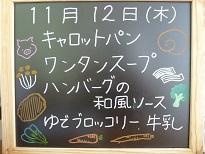 11月12日(木)の給食 投稿日時 : 2020/11/13 wajimj *キャロットパン *ワンタンスープ *ハンバーグの和風ソース *ゆでブロッコリー *牛乳 Tweet {{options.likeCount}} {{options.likeCount}} 0 コメント