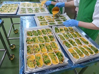 2月12日(水)の給食 投稿日時 : 2020/02/12 wajimj *ごはん*粕汁(2年2組輪島塗給食) *千草焼き*野菜のごまあえ*牛乳 今日は初めてメニューの「千草焼き」を作りました洋風のキッシュは作っていましたが、今日は和風味でチャレンジしてみました 鶏ひき肉、にんじん、たまねぎ、ひじき、たけのこを炒めてしょうゆ、砂糖、酒、塩で味付けし、小判型カップに詰めます。その後小さく切ったみつば、卵液を流し入れ、スチームコンベクションのコンビモードで焼きました ~甘い香りが漂っていました~ Tweet {{options.likeCount}} {{options.likeCount}} 0 コメント
