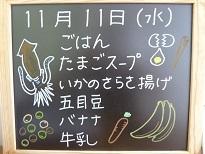 スルメイカさらさ揚げ☆彡11月11日(水)の給食 投稿日時 : 2020/11/11 wajimj *ごはん *かきたま汁 *石川県産スルメイカのさらさ揚げ *五目豆(発芽大豆使用) *バナナ *牛乳 Tweet {{options.likeCount}} {{options.likeCount}} 0 コメント