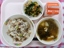 1月18日(金)の給食 投稿日時 : 2019/01/18 wajimj *牛肉とごぼうのごはん*じゃがいもの味噌汁*おひたし*牛乳 今日のまぜごはんは、牛肉とごぼう、にんじんを甘辛い味付けにして、麦入りごはんに混ぜました。いろどりに枝豆も入っています インフルエンザ等での、お休みが増えてきました 普段からバランスのよい食事をとっていると、病気にかかっても、治るのが早いそうです好ききらいせず、給食も残さず食べてほしいですね Tweet {{options.likeCount}} {{options.likeCount}} 0 コメント