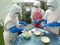 チキンナゲットを揚げて袋詰めするチームと二種類のおにぎり約500個をにぎるチームに分かれて作業しました。