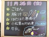 11月26日(金)の給食 投稿日時 : 2021/11/26 wajimj *ごはん*豚汁*輪島産はたはた米粉揚げ*小松菜の炒め煮*牛乳 今日は輪島産のさつまいもをたくさんいただいたので、豚汁に使いました。 とても甘いさつまいもでした。 今日の豚汁には、味噌にプラスして、生塩糀を入れてみました。 いつもの豚汁が深みのある味に仕上がりました ~おいしかったです。ありがとうございました~ Tweet {{options.likeCount}} {{options.likeCount}} 0 コメント