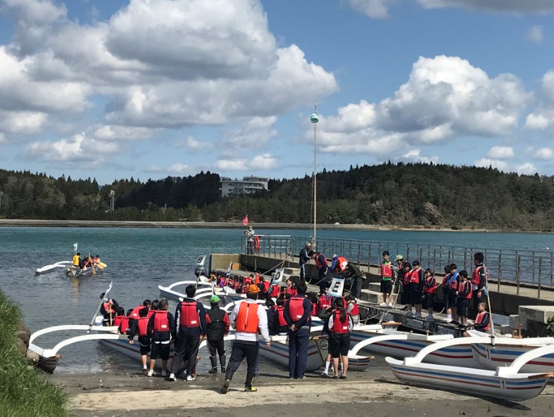 午前の活動は大型カヌーの体験です。