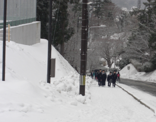 初日は、雪の中の登校でした。
