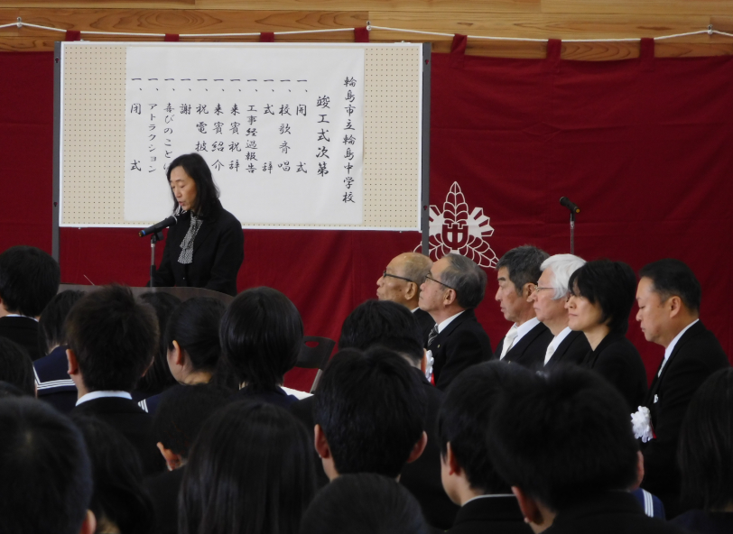 松山教育部長 工事経過報告 梶市長 祝辞