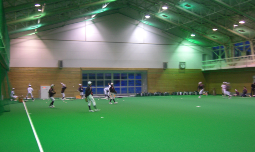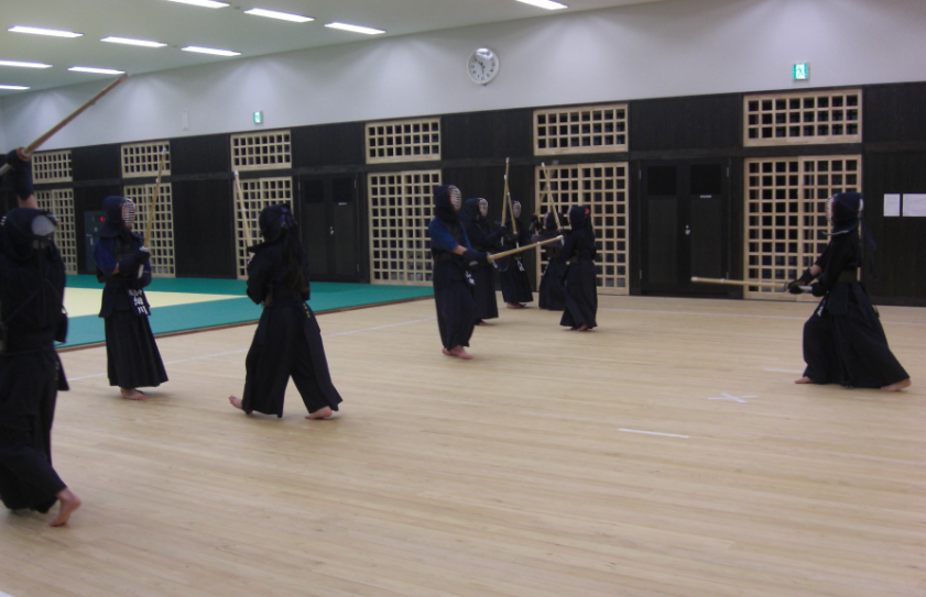 武道場では剣道部、全天候広場では野球部が