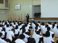 校長先生より「今までの練習の成果をしっかりと発揮してください。初戦が大事です。大会までの、この期間は、自分の課題を見つめ直してみましょう。そして大会への心の準備をしましょう。」