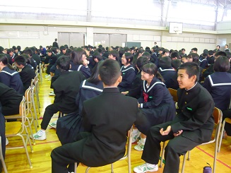 今日は、1.2年生が人間的成長を促進する心(メンタル)の強化について講義を受けました。