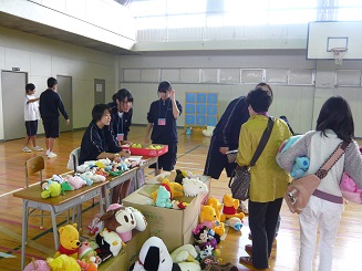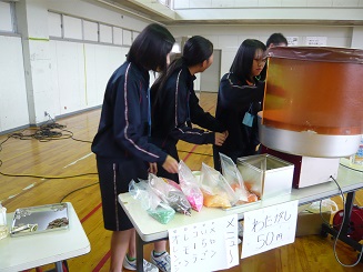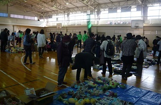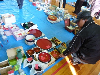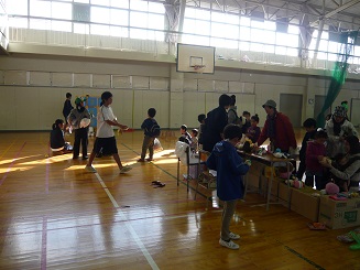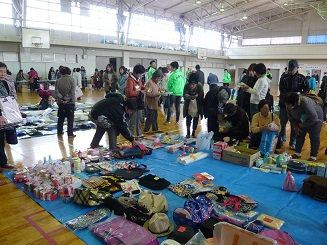 13:00より、輪島中学校の体育館でバザーが行われました。校下の河井小学校、鳳至小学校、大屋小学校、三井小学校、河原田小学校、鵠巣小学校との合同開催です。
