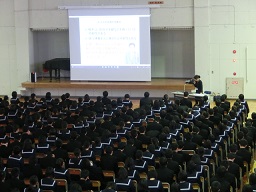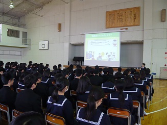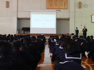 10月31日に1年生が、11月2日は2年生と3年生が体育館で自分の将来について考えてみました。講師は輪島市福祉課の羽村氏でした。