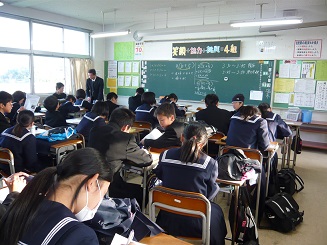 6限後に20分間の輪中タイムを行っています。1.2年生は、苦手な生徒が多かった数学を行っています。3年生は受験に向けての勉強をしています。