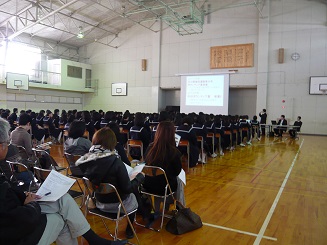 3年生と保護者のみなさんは、5,6限目に各高校の先生より、自校の特徴についのて説明を受けました。