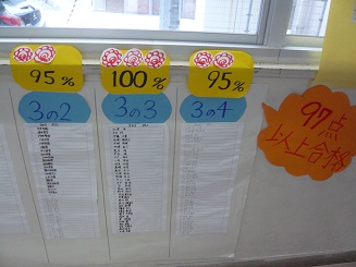 図書委員会では市内統一漢字テストで97点合格を呼びかけました。