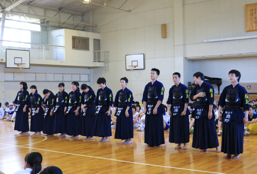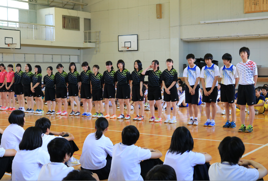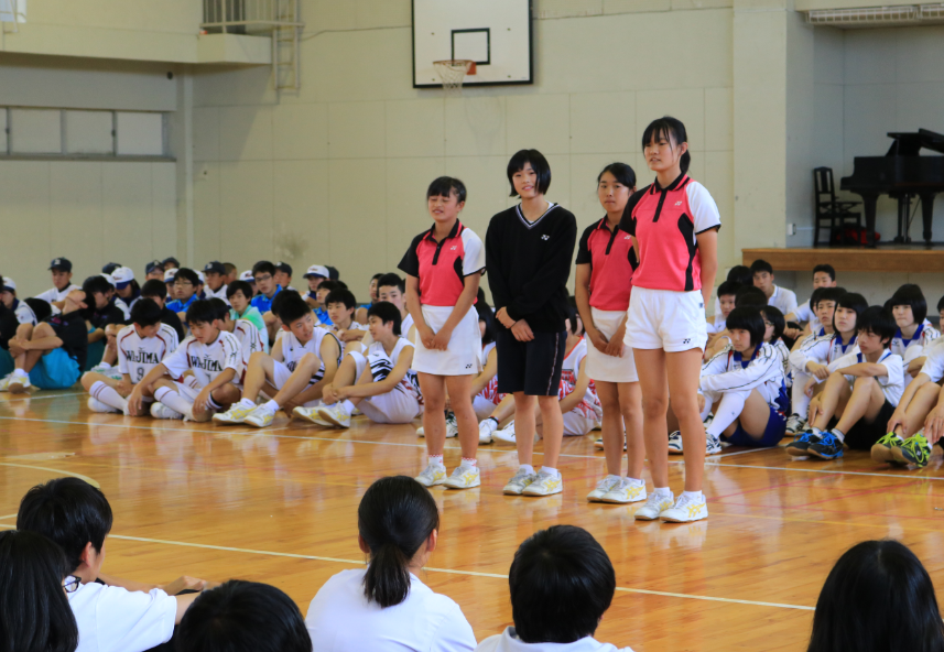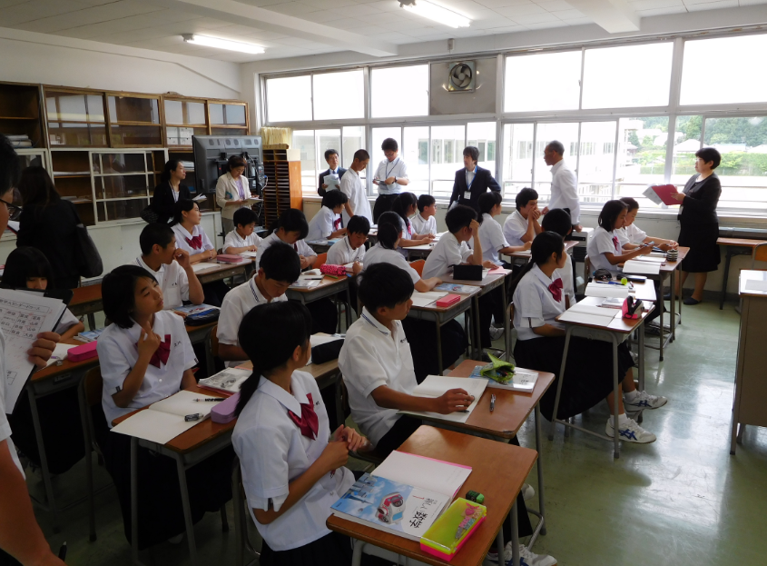生徒達の給食準備の様子を見ていただいた後、学校給食についての栄養士の話を聞きながら、給食を試食していただきました。