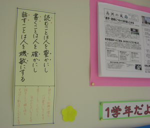 校舎掲示板には、先人のいろいろな言葉が掲示されています。