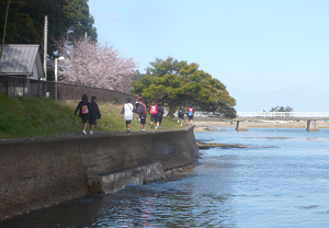 生徒は、その桜のトンネルを通り登校します。
