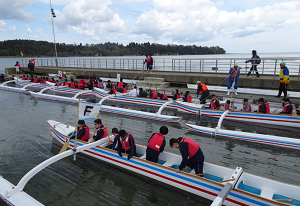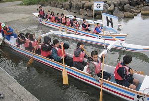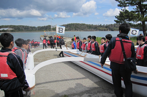 午前中は、大型カヌー体験を行いました。