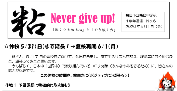 ・臨時休業期間:5月7日~5月31日 ・授業開始日:6月1日