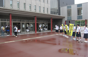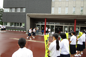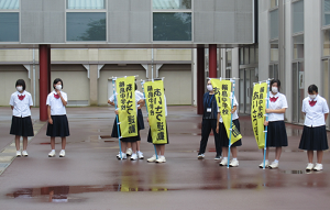 今日は、ソフトボール部親子による挨拶運動がありました。
