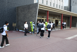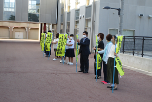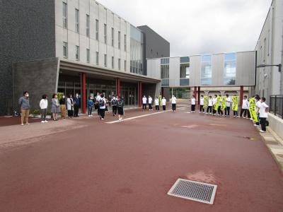 今日(23日)の挨拶運動の担当は水泳部と柔道部。