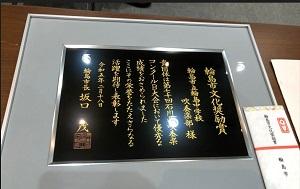 18日、市文化会館で文化賞表彰式があり