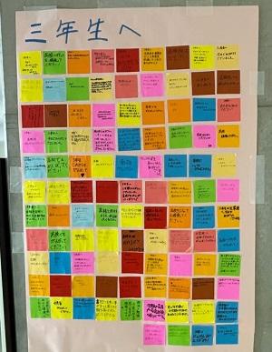 生徒玄関に「感謝のメッセージ」が掲示されました。