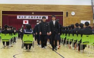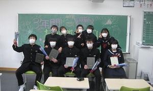 次に学年末テスト優秀賞・努力賞表彰を行いました。