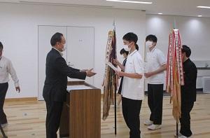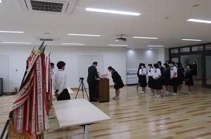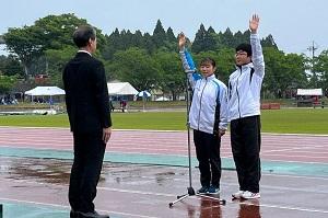 ※選手宣誓する紺谷さん(3年)船本さん(3年)