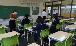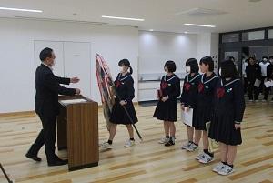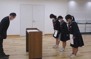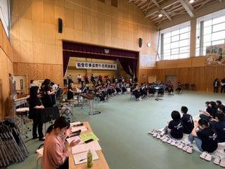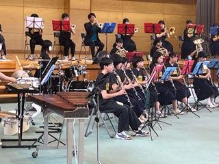 門前中学校の吹奏楽部員が輪島中学校を訪れ