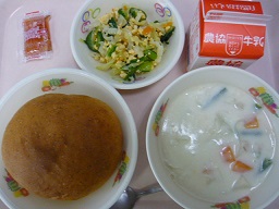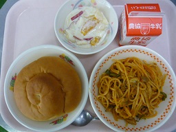 ミルクロール、スパゲッテイソテー、ヨーグルト和え、牛乳