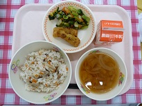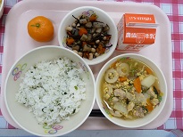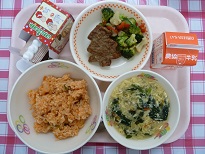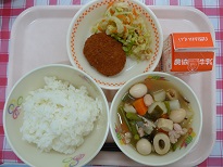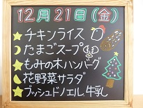 クリスマスが近いので、給食でもクリスマスを意識したメニューにしました