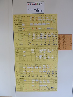 11月に健康委員会で行った給食残食調査の結果を委員会でまとめ、給食室前に掲示しました
