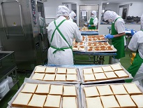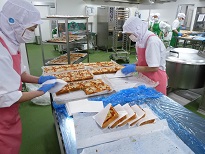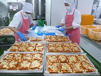焼き上がったピザトーストは、一枚ずつパン袋に詰めて、配食しやすく、手に持っても食べやすいようにして出しました