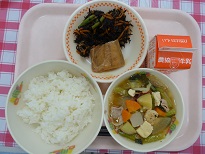 豚汁は具だくさんの汁物ですが、給食では特にたくさんの材料を使います