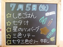 ハンバーグ、ゼリー、七夕汁に浮かんだオクラのお星さまです☆彡