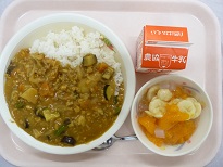 今日のカレーには、なす、ピーマン、いんげん、ズッキーニなどの夏野菜を使いました