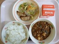 マーボーどうふは人気メニューです今日は、学校給食の調理師さんの強い味方「イラストでみる、はじめての大量調理」という本を参考に、マーボーどうふに一工夫をしました