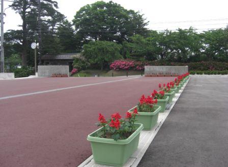 校門から玄関までのアプローチ(通称:挨拶ロード)に、