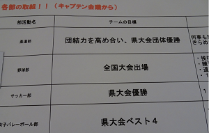 その後、各学級と各部の目標が報告されました。