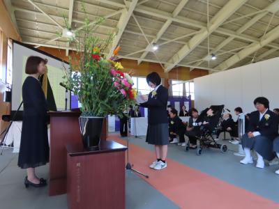 後期の生徒会が司会をし、「マラソン大会の表彰」「人権についての話」「中学部の発表」の内容で行われました。