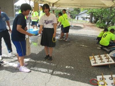 「じゃんけん列車」「新聞運びゲーム」「ボッチャ」の3つのゲームを行いました。門前中学校のみなさんと互いに協力、応援しあいながらゲームを楽しみました。
