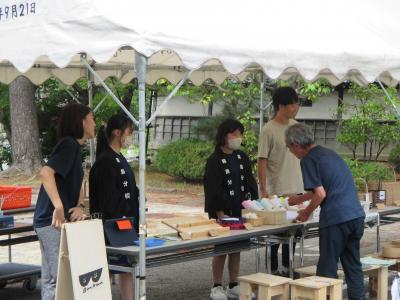 令和4年9月23日(金)に門前高校の文化祭が行われ、本校は販売実習として高等部の2名の生徒が参加しました。木工製品(椅子)や梅干し、クラフトバック、雑巾などを販売しました。最初は緊張していましたが、回数を重ねるごとに慣れ、お客様のオーダーを正しく聞き取ったり会計をしたりし、2人で協力して販売することができました。今年の売り上げは昨年の売り上げを大幅に超えることができ、とても嬉しそうでした。