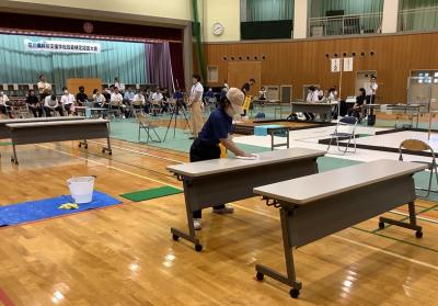 8月23日(金)に、いしかわ特別支援学校で技能検定認定大会が行われました。輪島分校の高等部からは、「清掃部門」テーブル拭き種目に3名が出場しました。