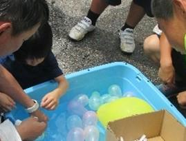 火曜日は、「フローティングフラワー」を作り、ビニールプールに水風船と共に浮かべて遊びました。水曜日は、「寒天」で感覚遊びをしたり寒天すくい用に型抜きをしたりし、木曜日は、寒天すくいをしました。金曜日は、ヨーヨー釣りやお菓子釣りをして楽しみました。釣ったお菓子は、その後1学期の思い出の写真を見ながら食べました。