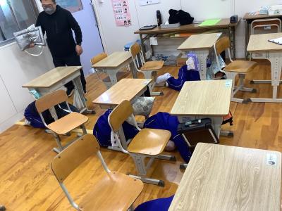 11月26日(水)に、仮設校舎になって初めての避難訓練が行われました。
