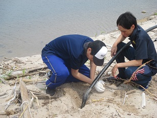 砂浜はゴミでいっぱい。特に目についたのがプラスチックゴミ。大きな漁具から小さな容器の破片まで、本当にたくさんありました。驚いたのは、みんなの根気強さ!途中で投げ出すことなく、ゴミ袋が山積みになりました。きれいになって気持ちよかったですね。