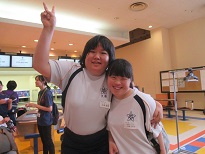 ボウリング・紙相撲・ボッチャ・バドミントン・サッカーです。やりたい人だけ集合して行っています。小学部から高等部まで、一緒に遊べるのはとても楽しいです。